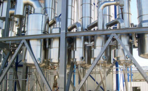 Los evaporadores (también llamados concentradores) son equipos utilizados para reducir el contenido de agua de un determinado líquido, dando como resultado un producto final líquido pero con una mayor cantidad de sólidos totales. El resultado puede ser tanto un producto final en sí mismo como es el caso del jarabe de glucosa, jarabe de fructosa, jugo concentrado de frutas, o bien un producto intermedio como por ejemplo la leche concentrada previo al secado spray que da como resultado final la leche en polvo.